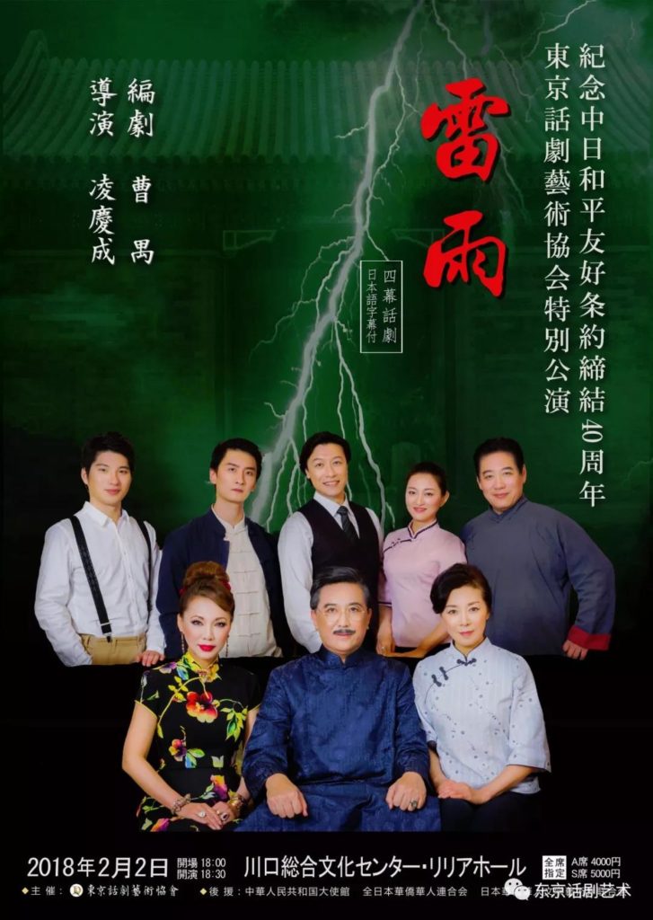 东京话剧艺术协会倾全力精心打造的话剧《雷雨》,终于和观众见面了。能够为一部泰斗级艺术大家曹禺先生的名著《雷雨》亲自执导并参与主演,可以说,这是我人生的宏愿,也是最执着的梦想。2017年10月9日,三十多年的梦想,终于披上了锦簇花团。话剧《雷雨》(二幕)亮相日本东京,续写了83年后在日华人华侨再创《雷雨》的不朽传奇。