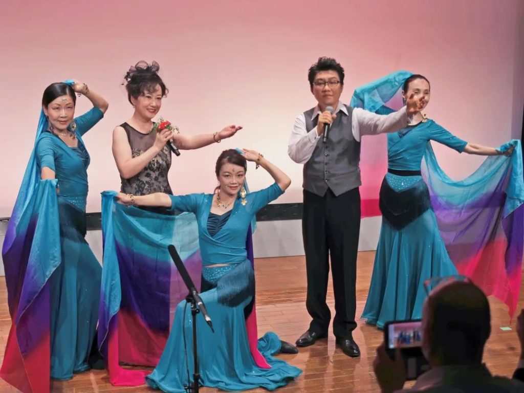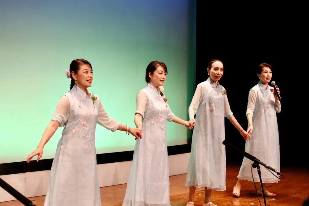 在随后的演出环节中,由编导张和平,声乐指导方华,朗诵吴翰、刘晶莹、杉山怡萍,潘桂芳题字,20几名成员一同演唱和朗诵了《今天是你的生日》,在他们全情投入的歌唱中,我们感受到了身为中华儿女的自豪感以及对祖国生日的深深祝福。