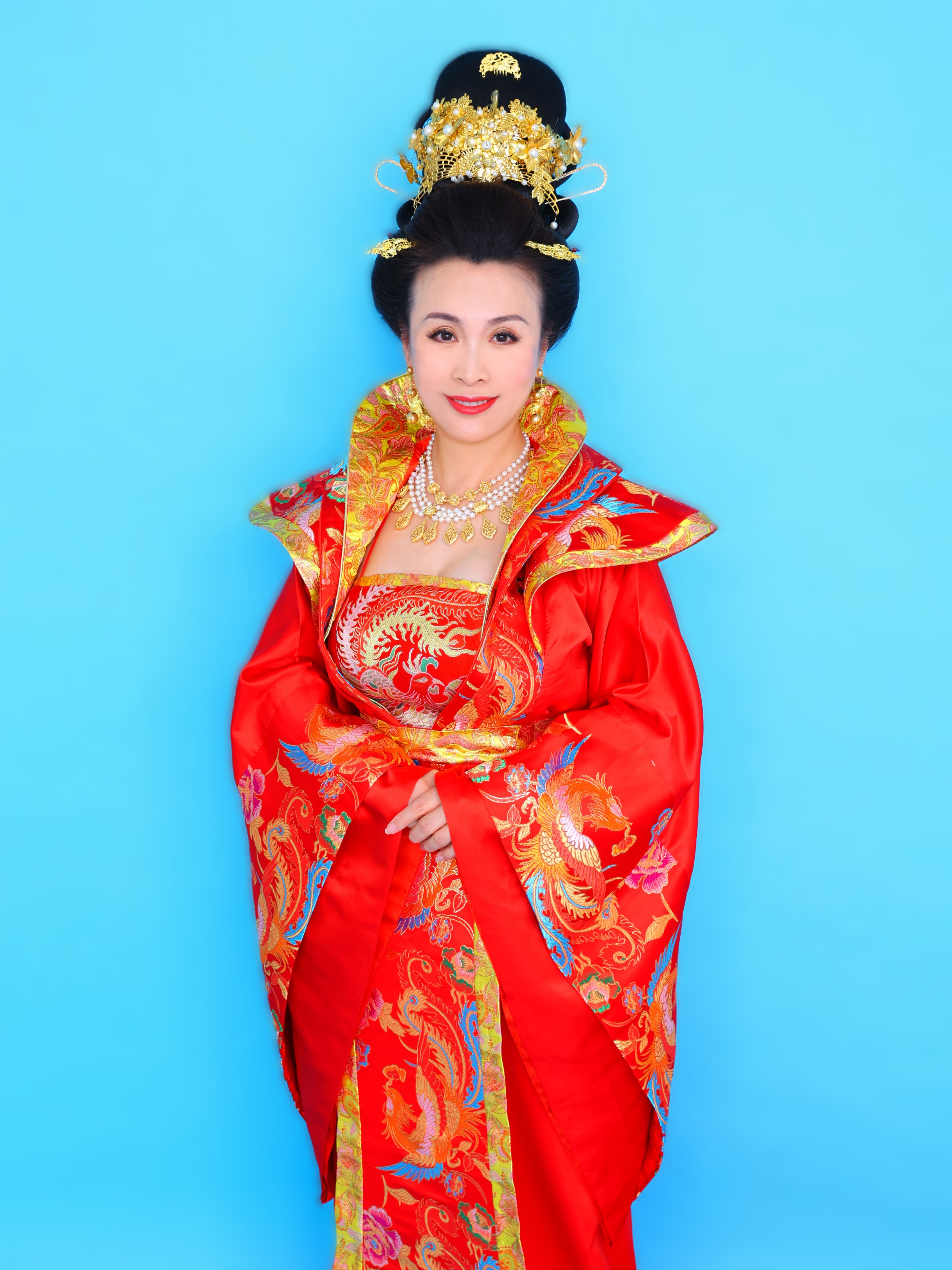 记者:孙萍老师,您好!还记得五年前在东京话剧艺术协会公演的三幕情感话剧《银婚》之后,我有幸采访过您。您当时饰演的田雅欣,一个典雅而贤淑的继母,不仅深爱着前妻的女儿,还慷慨地援助了丈夫的前妻以及罹患白血病的孩子。您塑造的这个角色一直深藏在许多话剧观众的心中。这次,在历史传奇剧《武则天女皇》中,您饰演的是中国四千年历史中唯一的女皇武则天,一个极具争议的历史人物。众所周知,武则天是一位卓越的统治者。她扩大了科举制度,使更多普通百姓有机会通过考试成为官员,破除了贵族对政府职位的垄断,提高了政府的效率和公平性。她实施的一系列改革,加强了中央集权,推动了经济和文化发展。然而,武则天也有她残酷无情的一面。为了巩固权力,她不惜杀害政治对手,甚至自己的家人,她的座右铭是“成大事者,至亲可杀。”她的统治时期也见证了大量的政治迫害和谋杀。作为这样一个复杂的历史人物,她的政治才能和铁腕政策在中国历史上留下了不可磨灭的印记。能否请孙萍老师分享一下,在接受这个角色和排练过程中遇到的挑战?