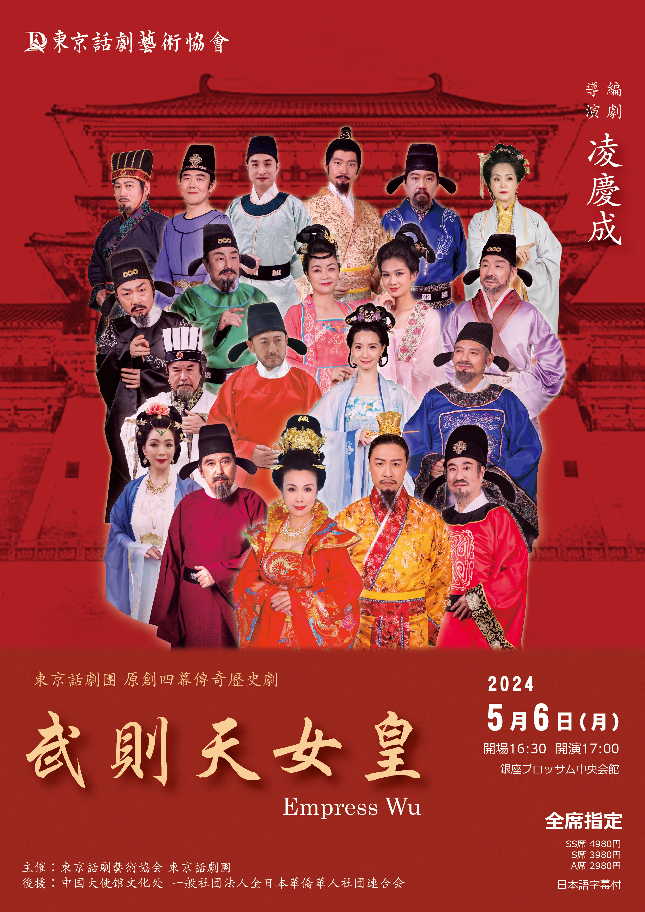 今年5月6日,在黄金周期间,我们将推出《武则天女皇》的第二轮公演。银座中央会馆的选址非常适合上演话剧,它不仅舞台设施完备,灯光、音响、照明设备也都极为出色,加之观众席的舒适,确保了演出的顺利进行。本次演出特别安排在下午5点开演,我们诚挚邀请广大观众光临剧场,近距离观赏我们的演出。熟悉舞台艺术的观众都知道,剧场里的体验与看电影、电视剧有着本质的不同。在剧场中,演员与观众之间的直接交流,演员对观众反应的感知,都是对他们最大的鼓舞与触动。因此,我们非常希望观众能够抓住这次机会,来体验这场历史传奇剧——《武则天女皇》的魅力。感谢大家的关注和支持。