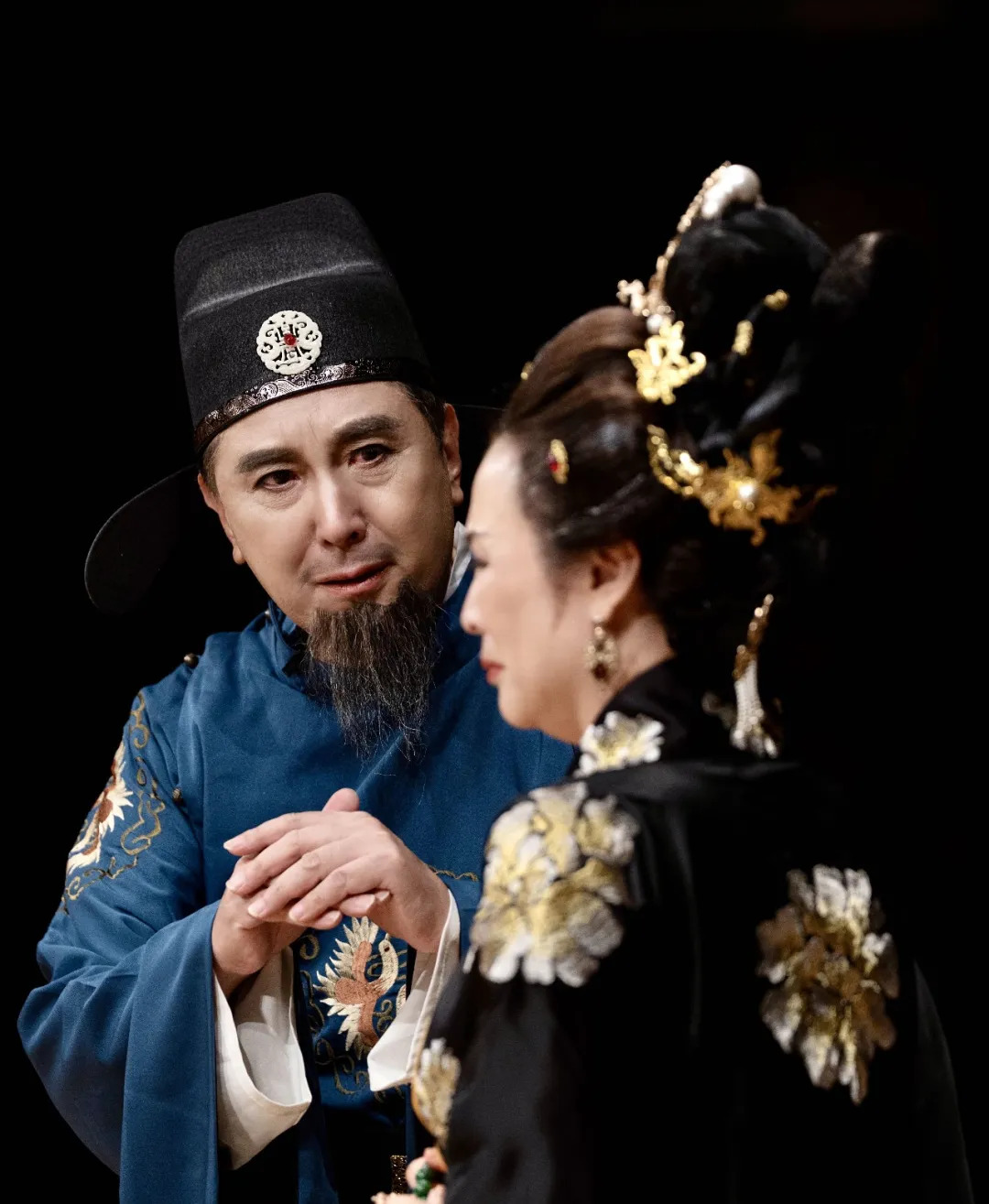 他对武则天晓之以理,动之以情,使武则天终于决定确立李显为太子。最后武则天缓缓地走到狄仁杰的身边,用手按住狄仁杰的肩头说,“你和朕都老了,你的忠诚朕是知道的,朕再斟酌一下,立太子是大局”。武则天和狄仁杰都知道自己将不久于人世了,这时孙萍老师眼含热泪与狄仁杰泪目相视,展示了君主与老臣的情谊。这场戏虽然不太长,但是我和孙萍老师都非常地入戏,每次都演得淋漓尽致。通过真挚的表演传达了角色的深层情感,这种发自内心的表演,不仅对我们自身是一次深刻的体验,也为观众提供了真正的艺术享受。